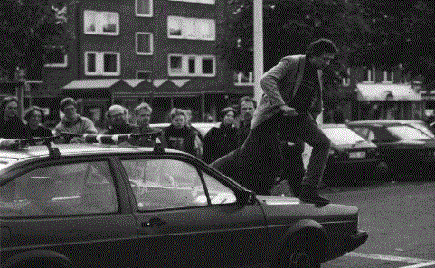 Schon waren sie da, drückten mich gegen die Hauswand. "Ausweis! Sofort" - "Ist er es?" - "Ja, schon". Binnen drei Sekunden hatten sie mich gepackt, nach Waffen durchsucht. Ich erklärte, daß ich ausversehen gerutscht sei, allenfalls eine fahrlässige Sachbeschädigung anzuzeigen wäre. Dies würde bedeuten, daß ich vor Gericht nicht verurteilt werden könnte und ...
