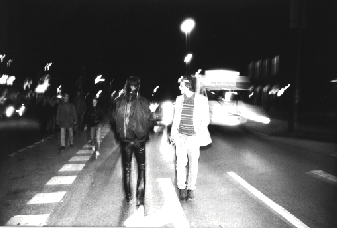 Wir werden in kleinen oder größeren Gruppen spazieren, wie wir wollen: in der Mitte, etwas weiter rechts oder links, ohne daß uns die AutofahrerInnen übersehen werden.